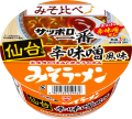 米味噌のうまみと唐辛子の辛みが特徴の濃厚な味わいのみそラーメンです。表面につるみをもたせた、粘りのある食感のめんです。ちぢれをつけることでスープが絡むめんに仕上げました。仙台味噌特有の米味噌のうまみをベースに、ポークのコクと豆板醤、コチュジャンのうまみを合わせた、濃厚な味わいと唐辛子の辛みが特徴のみそ味スープです。スープ中のみそに仙台味噌を55%使用。スープパックに薬味としてねぎを加えました。